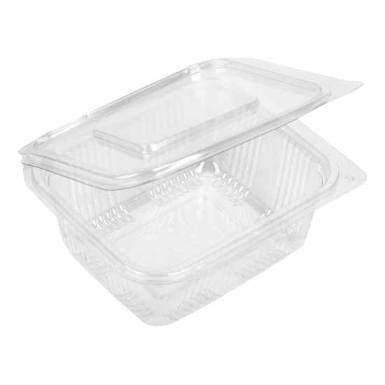 Πλαστικό σκεύος φαγητού από PET, με ενσωματωμένο καπάκι για ασφαλές κλείσιμο. Η χωρητικότητα 500cc είναι κατάλληλη για ατομικές μερίδες φαγητού, σαλάτες, ζυμαρικά και ελαφριά γεύματα. Ιδανικό για επαγγελματική χρήση σε take away και delivery.