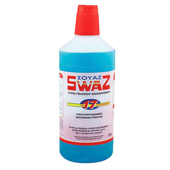Υγρό καθαρισμού Swaz κατάλληλο για όλες τις επιφάνειες του σπιτιού και ενός επαγγελματικού χώρου. Διαλύει τη βρωμιά, τα λάδια και τα γράσα, από τοίχους, πόρτες, ψυγεία, πλυντήρια, πλαστικά σκεύη, μεταλλικά έπιπλα και εργαλεία. Μπορεί επίσης να χρησιμοποιηθεί στο σφουγγάρισμα και για τον καθαρισμό χαλιών.